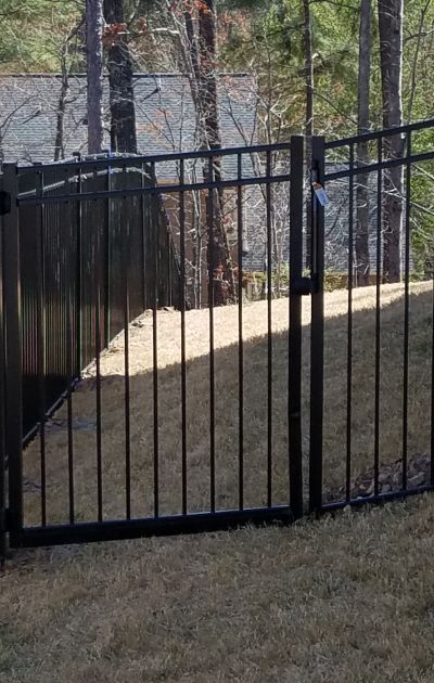Gate Options: When installing an aluminum fence, you'll need to consider the type and size of gates required for entry and exit. Aluminum fences offer various gate options, including single and double swing gates, sliding gates, and arched gates. The choice will depend on your specific needs and available space.