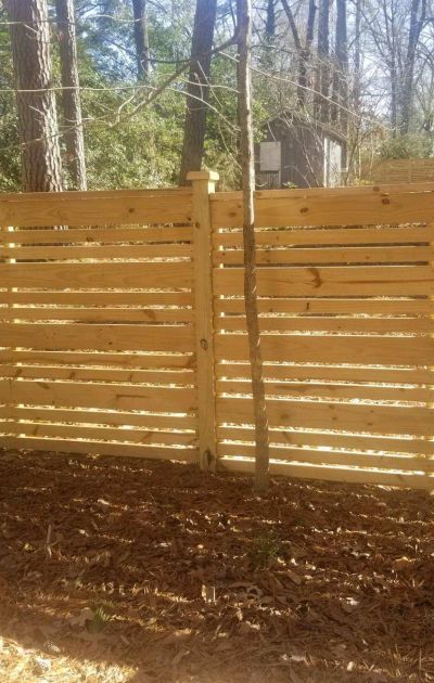 Lattice Top Fence: A lattice top fence combines solid boards with lattice panels on the upper portion of the fence. The lattice adds a decorative element and allows some light to pass through while still maintaining privacy. Lattice top fences are often made from cedar or pressure-treated pine.